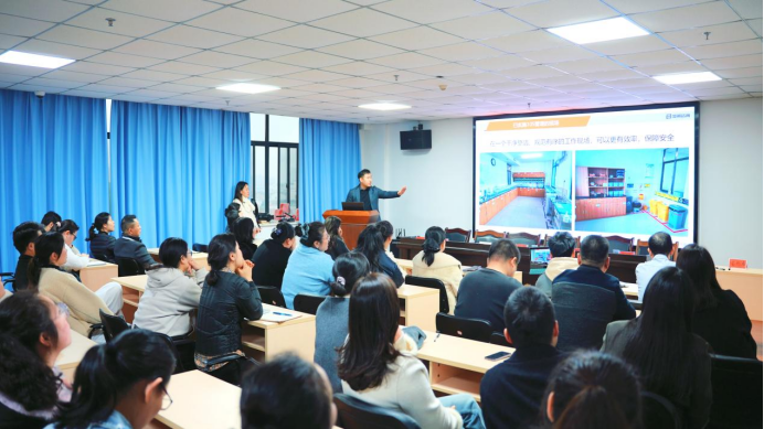 啟動大會后,成都鑒策公司10S管理專家向光銀對醫院職工進行了10S基礎知識培訓,詳細講解了樣板科室打造思路和10S管理的含義、重要性以及具體實施辦法等。