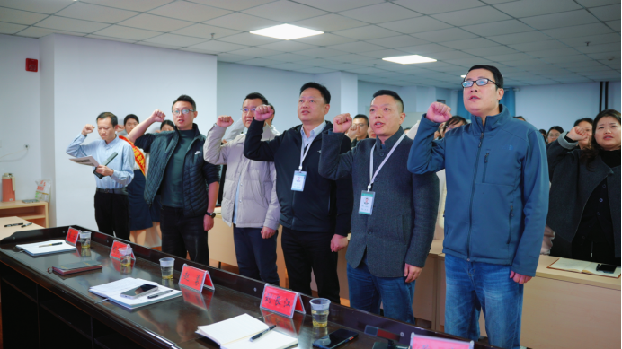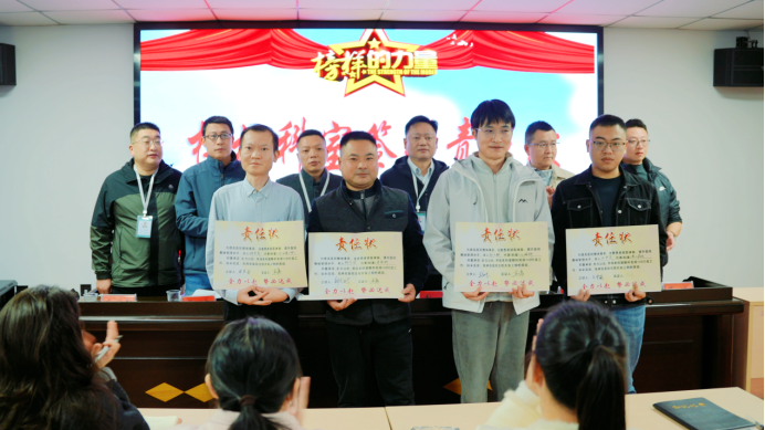 會上,男二病區、心身醫學科、醫技科、辦公室(四)4個科室主任分別代表樣板科室做表態發言并簽署責任狀。隨后,全體與會人員進行莊嚴宣誓,緊握拳頭,堅定目光,鏗鏘誓言響徹云霄。